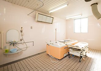 通常の入浴が出来ない人のために、横になったまま入浴できる特殊浴槽(機械浴)を設けております。