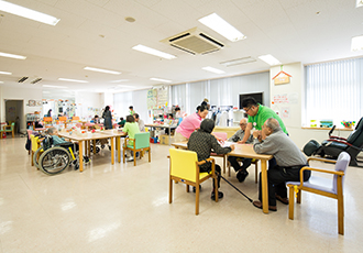 入所者の皆様と体操やレクリエーションを楽しんだり、入所者同士のふれあいのスペースです。